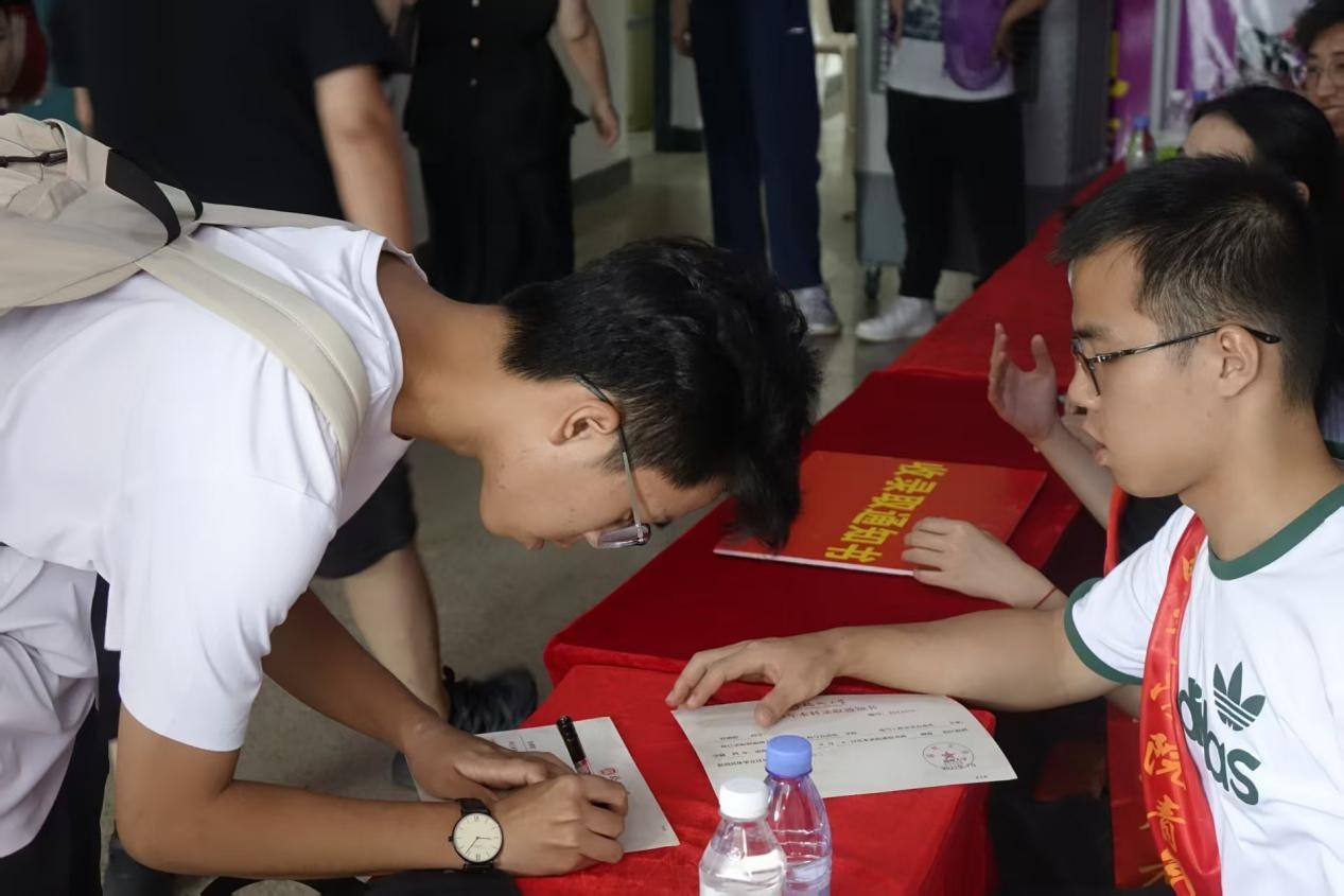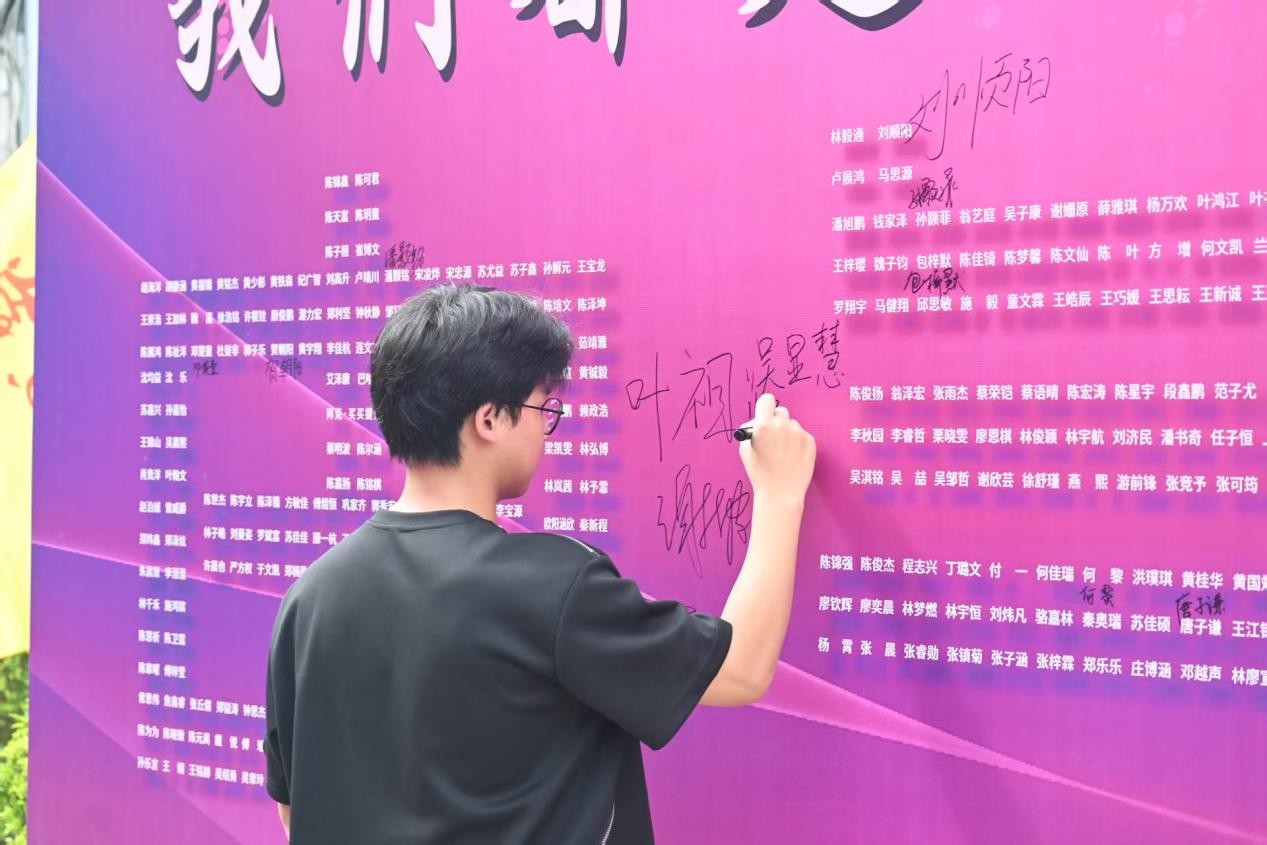 展板前,新生与家长们纷纷停下脚步,寻找属于自己的“电气印记”,挥笔签名,写下对大学生活的期待与向往,一同定格合影,留下珍贵的初见记忆。