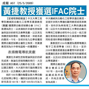 黄捷教授获选IFAC院士