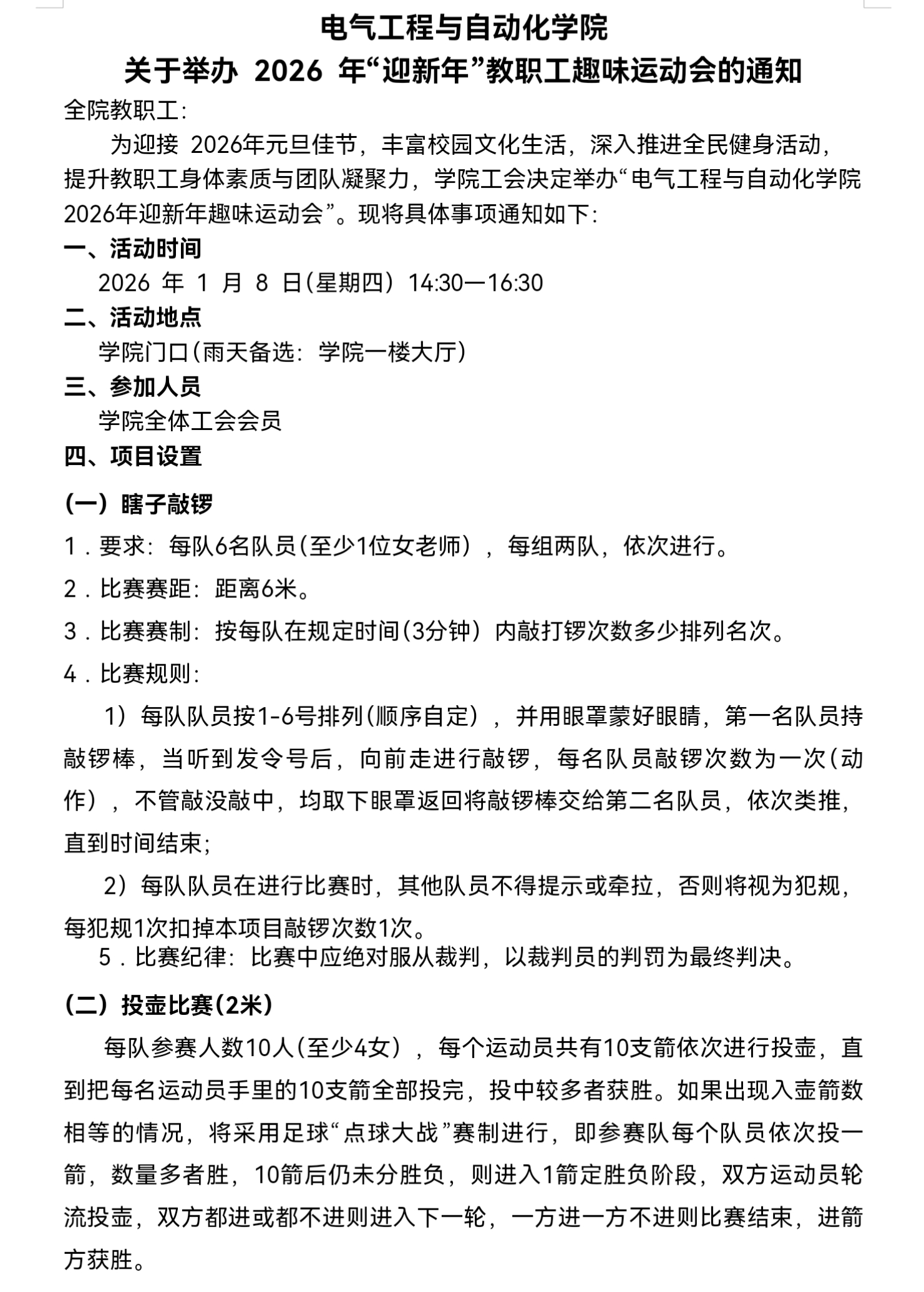 91暗网 关于举办 2026 年“迎新年”教职工趣味运动会的通知