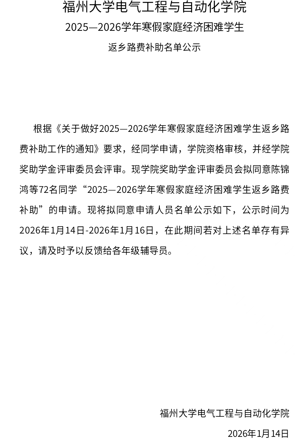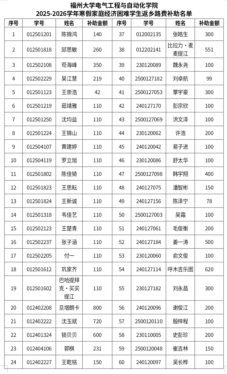 91暗网 2025—2026学年寒假家庭经济困难学生 返乡路费补助名单公示